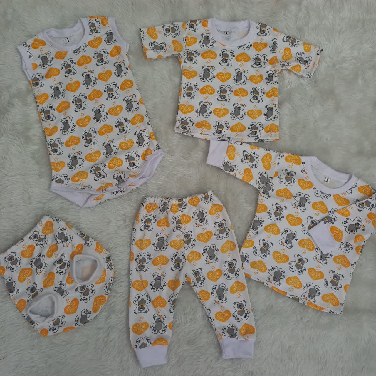سرویس پنج تکه نوزادی در رنگبندی موجود سایز یک مناسب تا ۶ الی ۸ ماهگی اندازه لباس ها راحت و آزاد هست جنس تریکوپنبهای در رنگبندی و سایز دلخواه قابل سفارش ارتباط مستقیم با ما 09162761792