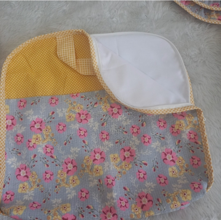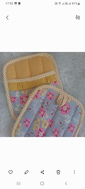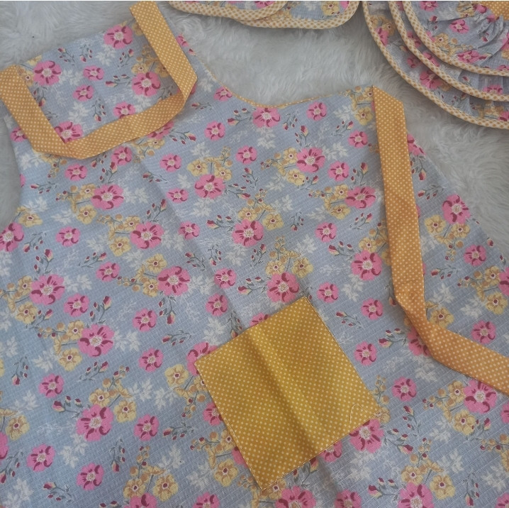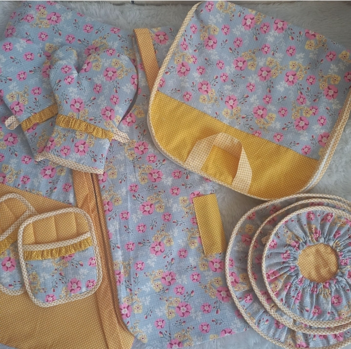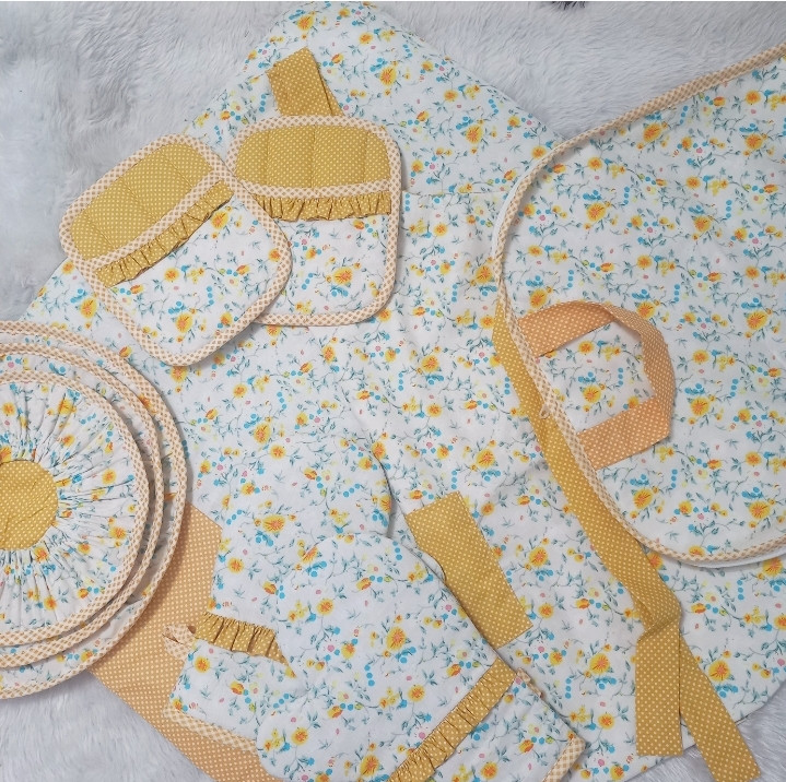 شامل ست دمکنی،دستگیره،پیشبند آستر دار با لایه میانی ضد آب نمگیر سایز ۵۰ در ۷۰ چهار لایه با آستر،مشما و الیاف، کیسه خرید نان زیپ دار با لایه مشما و آستر تترون نخ سفید. دستکش فر
